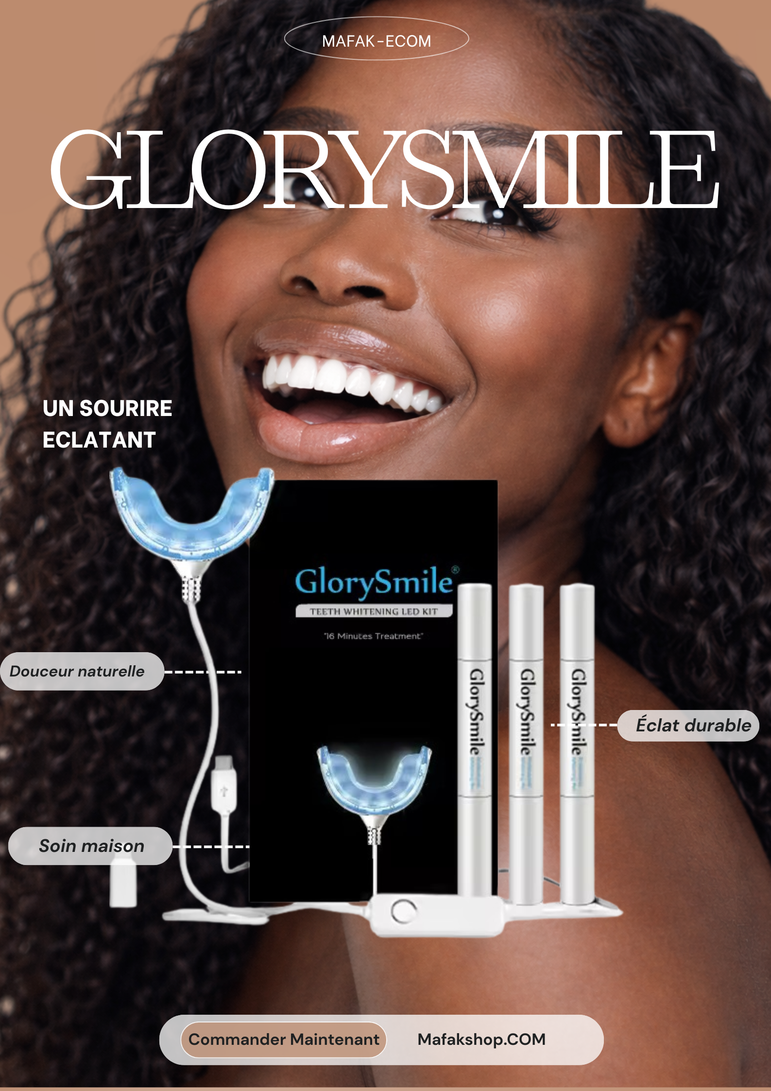 Glory Smile – Kit de blanchiment dentaire LED (Homme & Femme)✔ Sourire plus blanc en quelques minutes par jour✔ Technologie LED douce, respecte l’émail✔ Résultats visibles rapidement✔ Utilisation simple à la maison✔ Solution économique et accessible✔ Convient aux hommes et aux femmes👉 Parce qu’un beau sourire ne devrait jamais être un luxe.